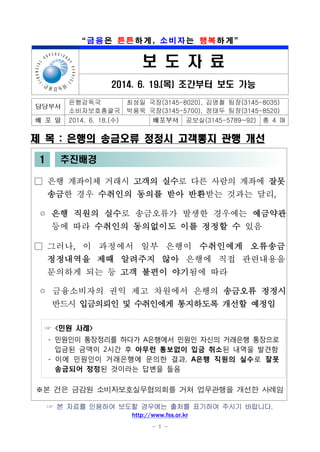 제 목 : 은행의 송금오류 정정시 고객통지 관행 개선