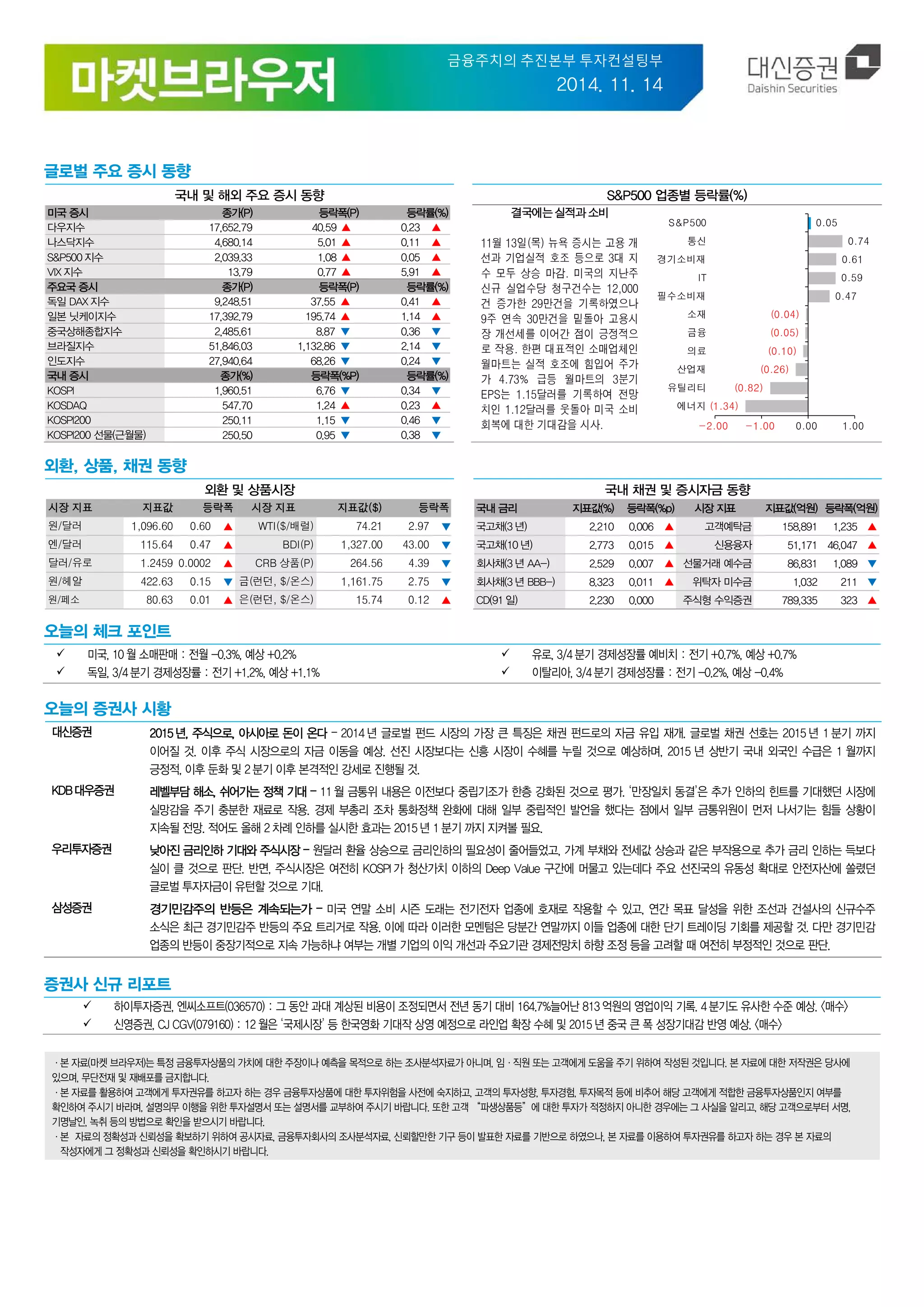 ㆍ본 자료(마켓 브라우저)는 특정 금융투자상품의 가치에 대한 주장이나 예측을 목적으로 하는 조사분석자료가 아니며, 임ㆍ직원 또는 고객에게 도움을 주기 위하여 작성된 것입니다. 본 자료에 대한 저작권은 당사에 있으며, 무단전재 및 재배포를 금지합니다.