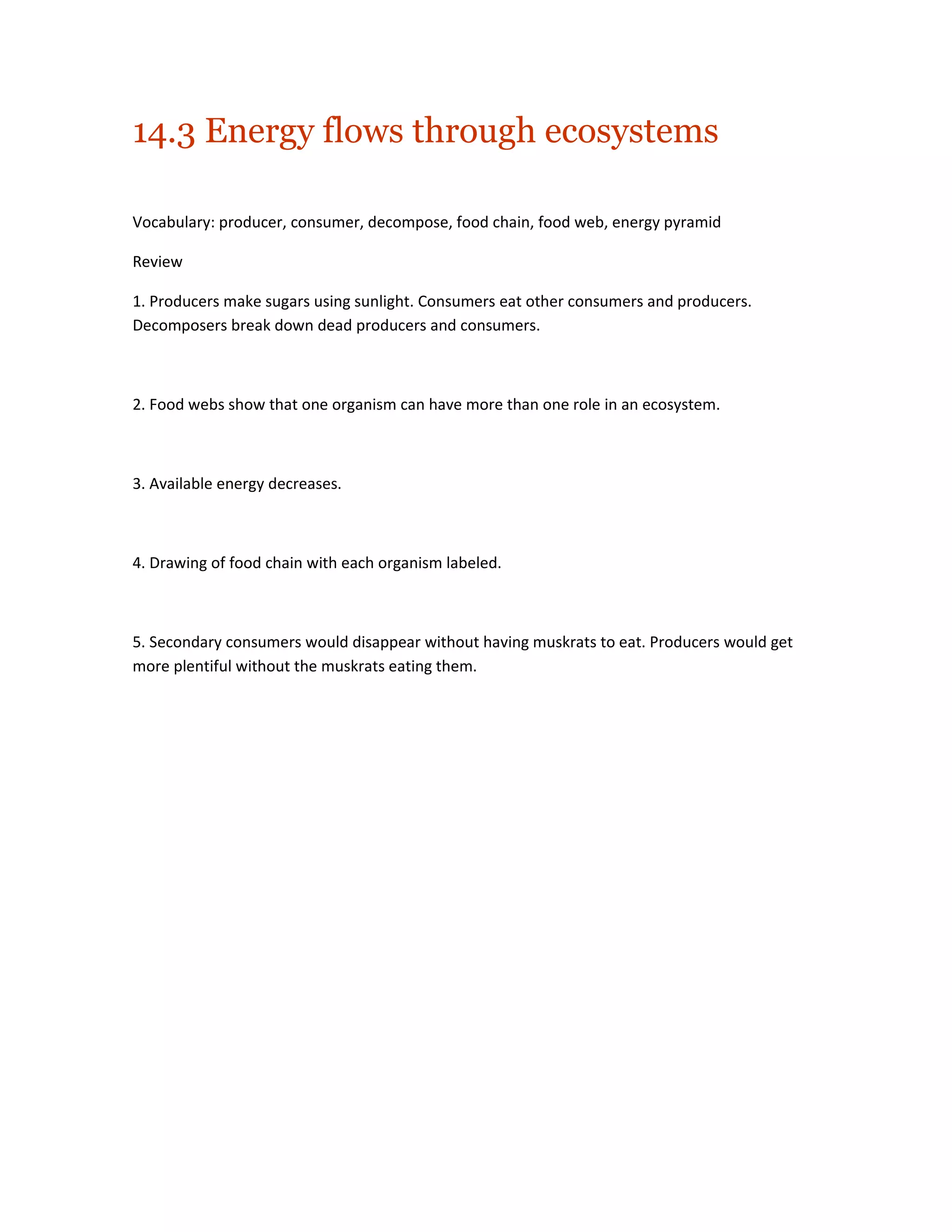 Energy flows through ecosystems in food chains and webs. Producers like plants use sunlight to make sugars that are then consumed by primary consumers, which are eaten by secondary consumers, and decomposers break down dead organisms. This transfer of energy is inefficient, so the amount of available energy decreases at each trophic level depicted in an energy pyramid. Disruptions at different levels can impact organisms throughout the entire food chain or web.