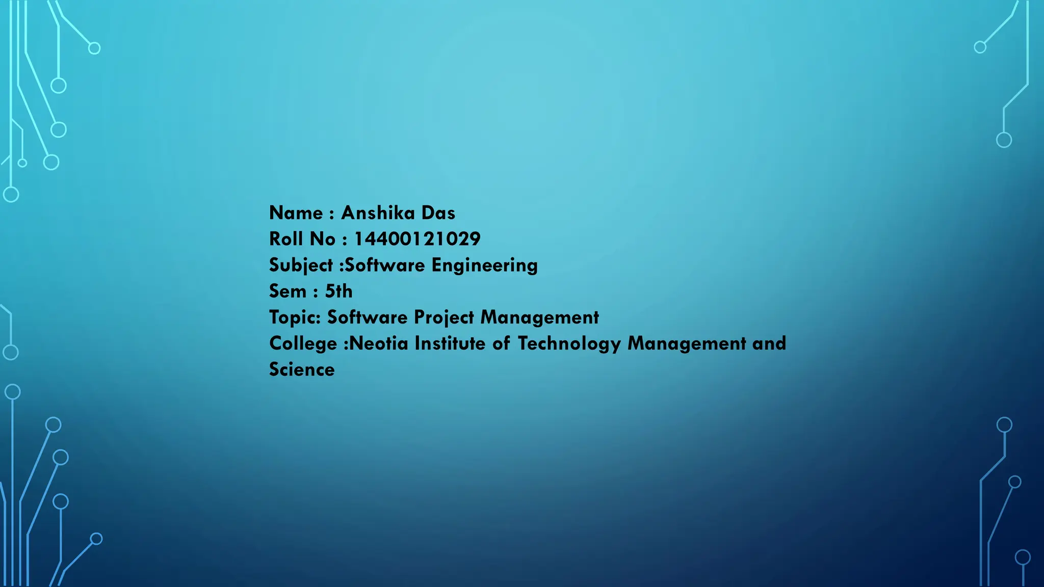 Anshika Das presented a document on software project management. The key points included: