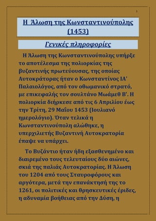 Η Άλωση της Κωνσταντινούπολης υπήρξε