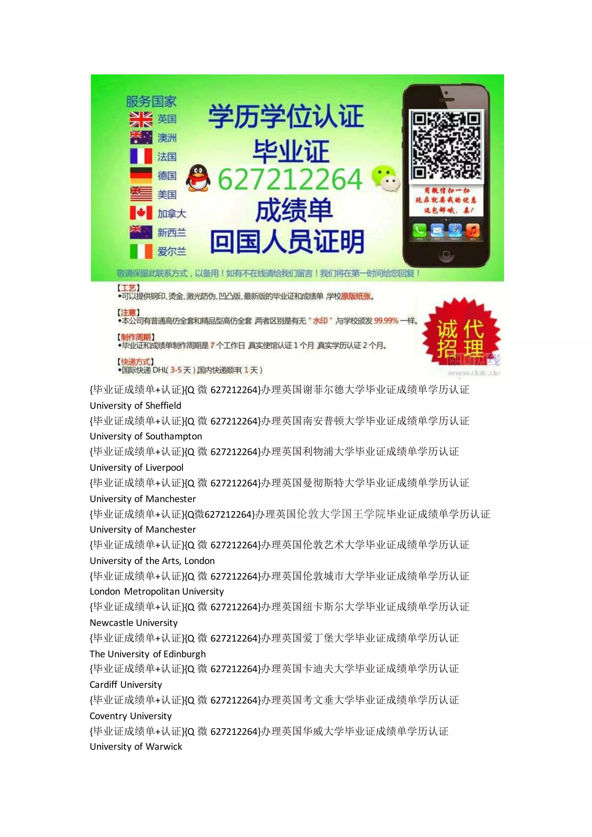 {毕业证成绩单+认证}{Q 微 627212264}办理英国谢菲尔德大学毕业证成绩单学历认证