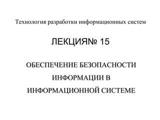 Документ описывает основные аспекты обеспечения безопасности информации в информационных системах, включая физическую защиту серверов и защиту от угроз. Он также обсуждает устойчивость к сбоям, резервное копирование информации и роль локального администратора безопасности в контроле доступа. В заключение представлены разные режимы безопасности, которые можно применять в зависимости от требований к аутентификации пользователей.
