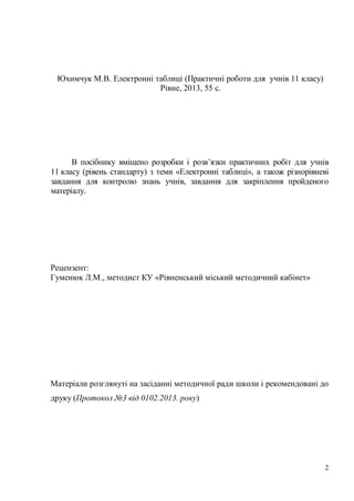 Юхимчук М.В. Електроннітаблиці (Практичні роботи для учнів 11 класу)