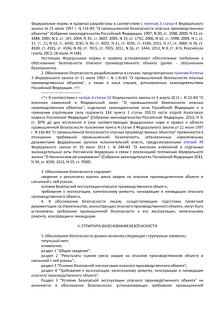 Документ утверждает федеральные нормы и правила в области промышленной безопасности, касающиеся обоснования безопасности опасных производственных объектов. Он определяет обязательные требования к безопасности, включая оценку риска аварий и условия безопасной эксплуатации. В документе также изложена структура и содержание обоснования безопасности, а также процедуру его разработки и изменения.