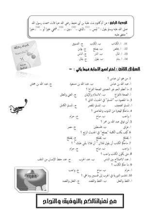 ﻗﺎﻟﺖ ﻋﳯﺎ ﷲ رﴈ ﻣﻌﻴﻂ ﰊٔ^ 6ﻦ ﺔhﻋﻘ ﺑ~ﺖ ﳇﺜﻮم مٔ^ ﻋﻦ ؤ^ اﲑ_ ﳮﻲƒﻓ..)14( ..اﲑ_ ج.ﲧﺶ 6ﻦ ﷲ ﻋﺒﺪ اﻟﺘﻠﻒ ﻣﻦ ٕ‡ﺴﺎنﻻا ﺣﻔﻆ ﻋﻨﺪ وא!" # $%& ' " ()* )$+א א א)$+א א א)$+א א א)$+א א אWﷲ رﺳﻮل ﲰﻌﺖ ﻗﺎﻟﺖ ﻋﳯﺎ ﷲ رﴈ ﻣﻌﻴﻂ ﰊٔ^ 6ﻦ ﺔhﻋﻘ ﺑ~ﺖ ﳇﺜﻮم مٔ^ ﻋﻦ ﻳﻘﻮل وﺳﲅ ﻠﻴﻪ ﷲ ﺻﲆ" :ﺲlﻟ..)11( ..يŒا..)12( ..ﺑﲔ..)13( ..ؤ^ اﲑ_ ﳮﻲƒﻓ ﻟﻜﺬاباب.اﻟﻜﺬبج.اﻟﻔﺴﻮق ﳜﻠﺺب.ﻳﺼﻠﺢج.ﻳﺆﻣﻦ ب.اﻟﻨﺎرج.اﻟﻨﺎس ﻳﻨﺎمب.ﻳﻘﻮلج.ﻳﻘﺎل אאאא! " # א! " # א! " # א! " # א::::−−−− ﻋﺒﺎس ا6ﻦ ﻫﻮ ﻣﻦ؟ ﻋﺒﺎس 6ﻦ ﷲ ﻋﺒﺪب.ﻣﺴﻌﻮد 6ﻦ ﷲ ﻋﺒﺪ اﻟﻨﻌﻤﺘﲔ ”ﲑاغﺮاﻟﻔ اﻟﺼ@ﺔ؟ ب.ٕﳝﺎنﻻاو {ﺳﻼمج.اﻟﻌﻘﻞو اﻟﻐﲏ اﳌﺴﲅ"اﳊ ﰲاﻟﺜﺎﱐ ﺪﻳﺚ؟ ب.اﳌﻘﴫ اﳌﺴﲅج.اﻟﲀﻣﻞ اﳌﺴﲅ •اﳌﻌﺎﺻو ﻧﻮبŒا ﻣﻦ اﻟﻬﺠﺮة؟ ب اﺟﺐو.ج ﺎحhﻣ.امﺮﺣ ﲻﺮ 6ﻦ ﷲ ﻋﺒﺪ ﺗﻮﰲ ﻦfٔ^؟ ب.ﻓﻠﺴﻄﲔج.ﻣﴫ اﻟﳫﻤﺔ ﺐiﻜf ¡ﻴﻒ"ﻳﺼﻠﺢ"؟ اﺑﻊﺮاﻟ اﳊﺪﻳﺚ ﰲ ب.َﺢِﻠ ْﺼُﻳج.ْﺢِﻠ ْﺼُﻳ ﻟﻔﻼن ﻳﻘﻮل نٔ^ اﻟﻜﺬب ﻣﺎﺣﲂ"ﻠﻴﻚ ﻳ¦ﲏ nﻓﻼ نٔ^"؟ ب اﺟﺐو.ج ﺎحhﻣ.امﺮﺣ ؟ اﺟﺐو اﻟﻜﺬب ﻜﻮنf ﻣﱴ ب اﻟﻨﺎس ﺑﲔ {ﺻﻼح ﻋﻨﺪ.ج اﳊﺮب ﻋﻨﺪ.اﻟﺘﻠﻒ ﻣﻦ ٕ‡ﺴﺎنﻻا ﺣﻔﻆ ﻋﻨﺪ ؟ اﻟﻜﺬب ﺣﲂ ﻣﺎ ب امﺮﺣ.ج ﺎحhﻣ.اﺟﺐو ﱔ وﻣﺎ ﻗﺴﻤﲔ ٕﱃا اﳊﺮب ﰲ اﻟﺘﻮرﻳﺔ ﺗﻨﻘﺴﻢ؟ ب.اﻟﻘﺼﺪو ﻠﻔﻆrاج.اﻟﻘﺼﺪو اﻟﻔﻌﻞ وא!" # $%& ' " ()* )$+א א א)$+א א א)$+א א א)$+א א א ﻳﻘﻮل وﺳﲅ ﻠﻴﻪ ﷲ ﺻﲆ " 11.ا.ﻟﻜﺬابا 12.ا.ﳜﻠﺺ 13.ا.اﳌﺎل 14.ا.ﻳﻨﺎم אאل אאאل אאאل אאאل אWWWWאאאא 1.ﻋﺒﺎس ا6ﻦ ﻫﻮ ﻣﻦ ا.ﻋﺒﺎس 6ﻦ ﷲ ﻋﺒﺪ 2.اﻟﻨﻌﻢ ﻋﻈﻢٔ^ ﻣﺎاﻟﻨﻌﻤﺘﲔ ”ﲑ ا.اغﺮةاﻟﻔ اﻟﺼ@ﺔ 3.ب اﳌﻘﺼﻮد ﻣﺎ"اﳌﺴﲅ ا.اﻟﻀﻌﻴﻒ اﳌﺴﲅ 4.ﻣﺎﺣﲂ•اﳌﻌﺎﺻو ﻧﻮبŒا ﻣﻦ اﻟﻬﺠﺮة ا.ب اﺟﺐو 5.ﲻﺮ 6ﻦ ﷲ ﻋﺒﺪ ﺗﻮﰲ ﻦfٔ^ ا.اقﺮﻋ 6.اﻟﳫﻤﺔ ﺐiﻜf ¡ﻴﻒ ا.ُﺢِﻠ ْﺼُﻳ 7.ﻟﻔﻼن ﻳﻘﻮل نٔ^ اﻟﻜﺬب ﻣﺎﺣﲂ ا.ب اﺟﺐو 8.؟ اﺟﺐو اﻟﻜﺬب ﻜﻮنf ﻣﱴ ا.ب اﻟﻨﺎس ﺑﲔ {ﺻﻼح ﻋﻨﺪ 9.؟ اﻟﻜﺬب ﺣﲂ ﻣﺎ ا.ب امﺮﺣ 10.ﱔ وﻣﺎ ﻗﺴﻤﲔ ٕﱃا اﳊﺮب ﰲ اﻟﺘﻮرﻳﺔ ﺗﻨﻘﺴﻢ ا.اﻟﻔﻌﻞو ﻠﻔﻆrا وא!" # $%& ' " ()*
