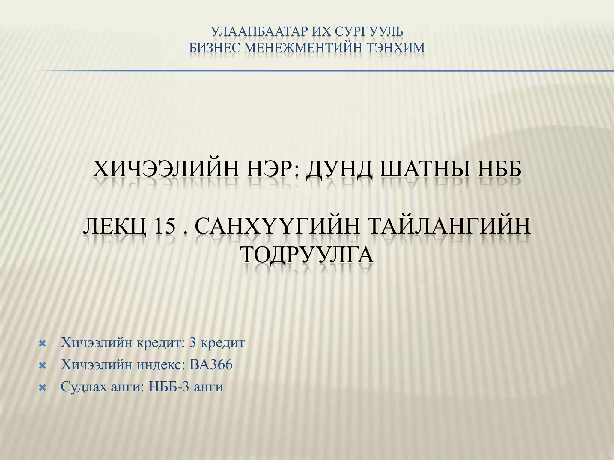 ЛЕКЦ 15 . САНХҮҮГИЙН ТАЙЛАНГИЙН