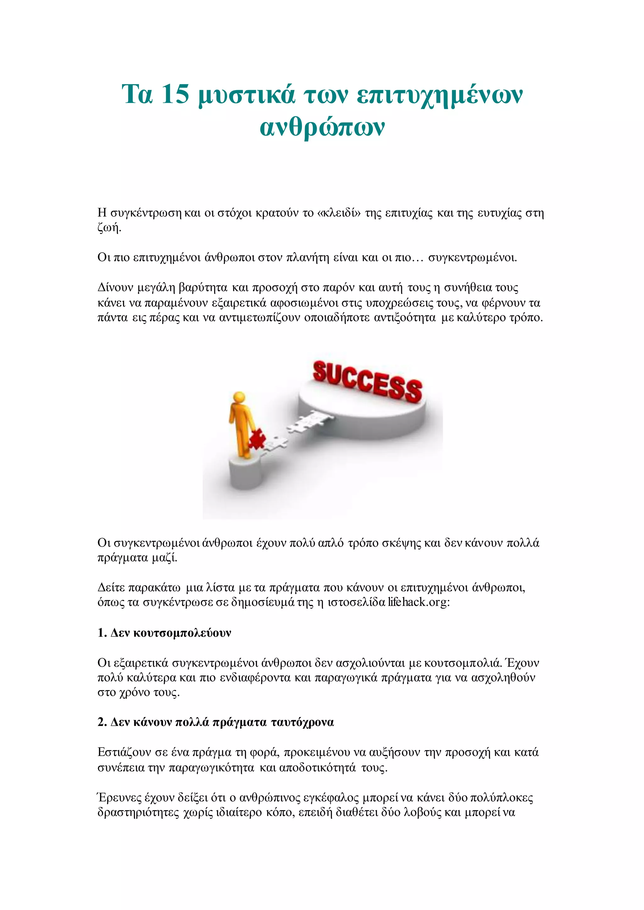 Η συγκέντρωση και οι στόχοι κρατούν το «κλειδί» της επιτυχίας και της ευτυχίας στη ζωή.
