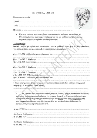 β) στ. 534-542: Ο Κύκλωπας ……………………………………………………………………..