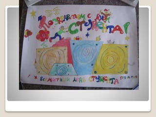 Документ представляет собой портфолио группы ТД-15 Мариинского политехнического техникума, которое включает информацию о студентах, их обязанностях и участии в различных реализуемых мероприятиях. Группа активно участвует в культурно-массовых и спортивных событиях, укрепляя коллективный дух и ответственность среди студентов. В документе также перечислены достижения группы, а также информация о день здоровья и различных турнирах.