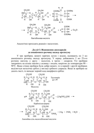 розчину лактози, у другу – мальтози, в третю – сахарози. Усі пробірки