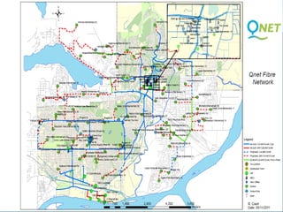 The document discusses Vancouver and collaboration on digital infrastructure projects. It summarizes the City of Coquitlam's municipal fiber optic network, QNet, which leases dark fiber to telecom companies. QNet has generated cost savings and improved connectivity for the city. The document outlines how Coquitlam is working with other municipalities in the Vancouver area to foster broadband access and economic development through shared infrastructure projects.