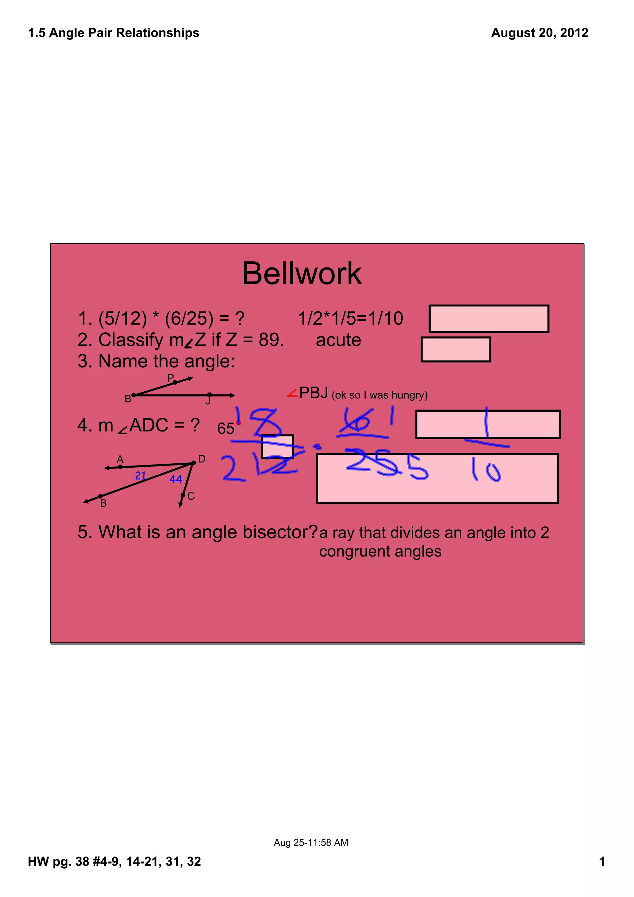2) Adjacent angles share a common vertex and side. A linear pair are adjacent angles whose non-common sides form opposite rays.
