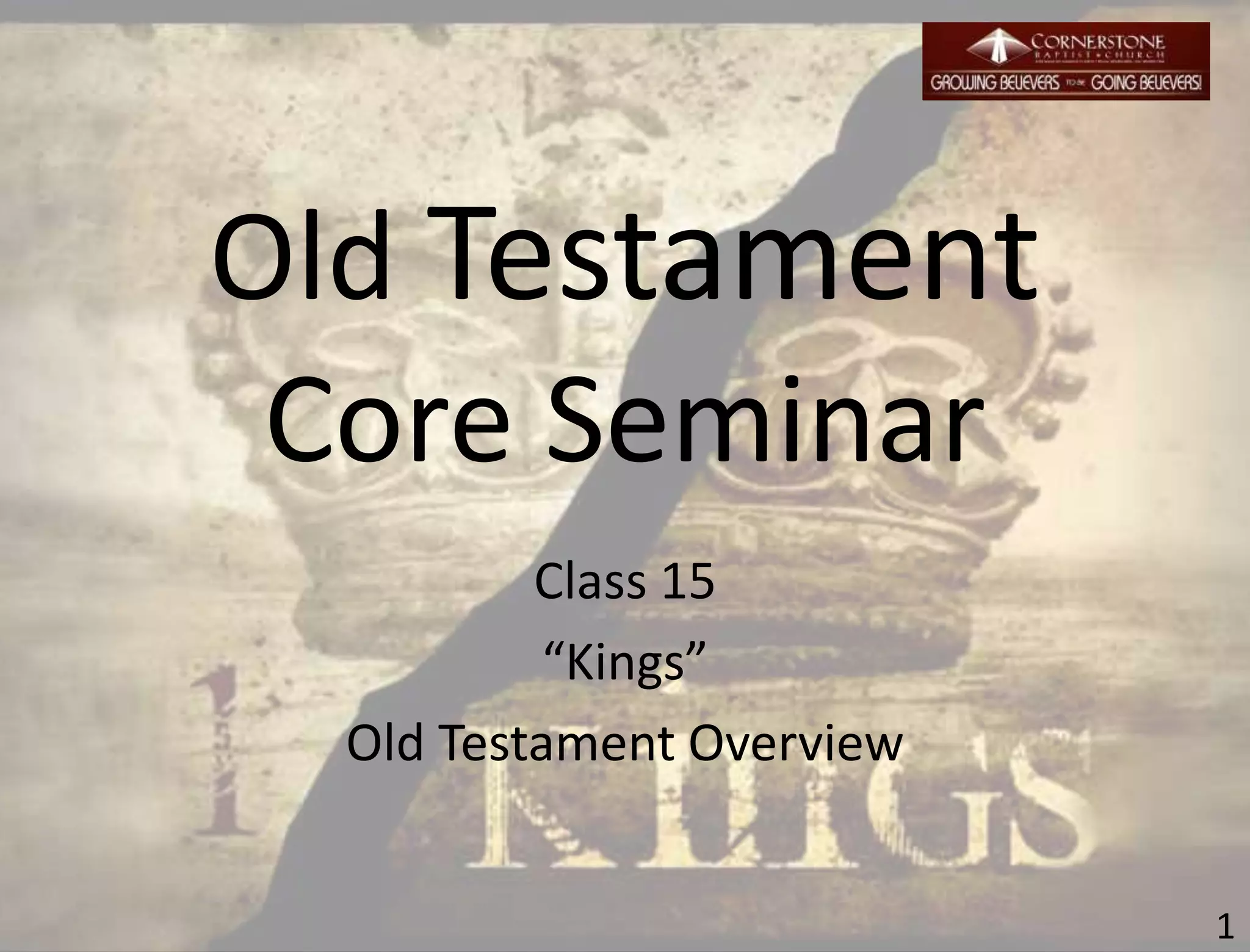 The document provides an overview of the biblical books of 1 and 2 Kings. It discusses how Kings originally formed one book and was compiled from many historical sources. The events covered stretch from King Solomon's rule to the exile of God's people. Throughout Kings, the kings are evaluated based on how well they obey God's law. Both the northern and southern kingdoms experience periods of obedience and disobedience among their rulers. This leads to blessings or judgments, as outlined in Deuteronomy. Ultimately, no earthly king fully fulfills God's purposes until the coming of Jesus Christ as the eternal king in the line of David.