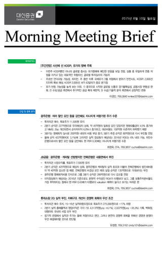 - 단기적으로 15년 3분기에 이익모멘텀 및 밸류에이션 매력도 부각