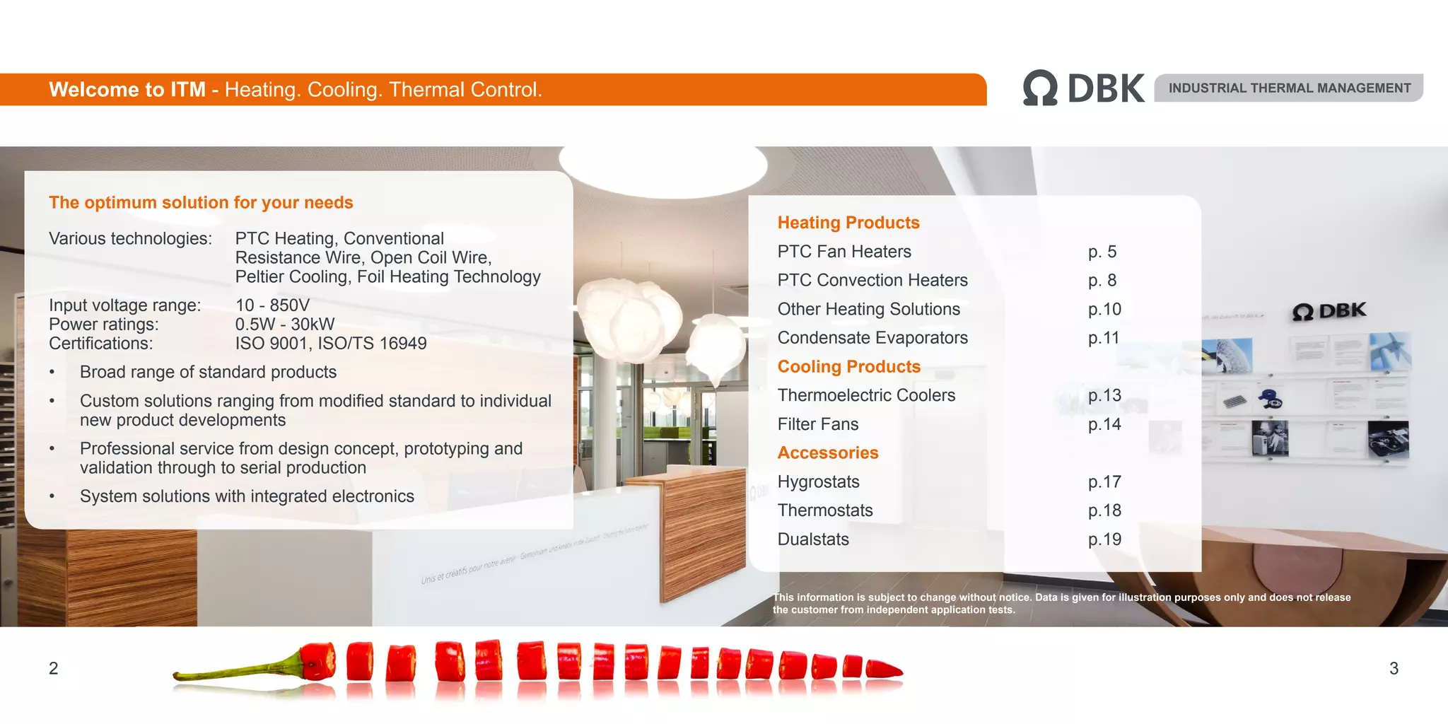 - A range of heating and cooling products for electrical enclosures using technologies like PTC heating, thermoelectric cooling, and filter fans.