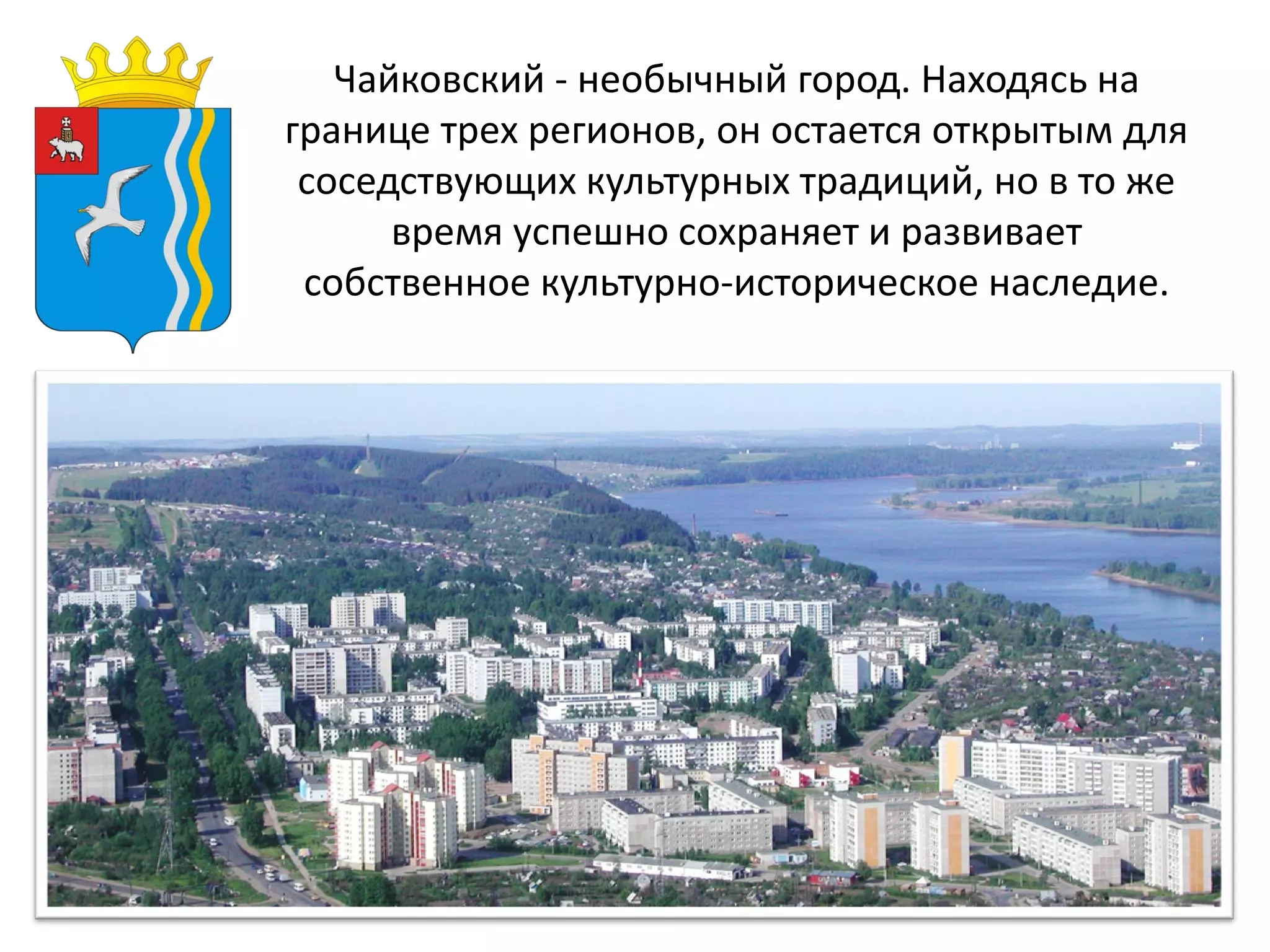 Чайковский – культурный центр России, находящийся на границе трех регионов, который сохраняет свои культурные традиции и привлекает международные мероприятия, такие как академии и конкурсы для молодых композиторов. Город проводит краевые фестивали искусств, включая исторические и современные музыкальные события, на которых участвуют исполнители со всего мира. В Чайковском также проходят фестивали народной культуры и мастер-классы, привлекающие внимание к местным традициям и творчеству.