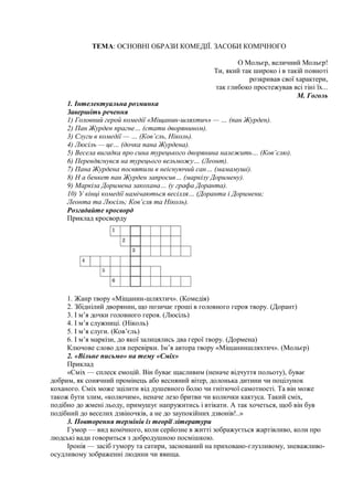 ТЕМА: ОСНОВНІ ОБРАЗИКОМЕДІЇ. ЗАСОБИ КОМІЧНОГО
