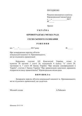 підприємств (малу приватизацію)” Кіровоградська міська рада