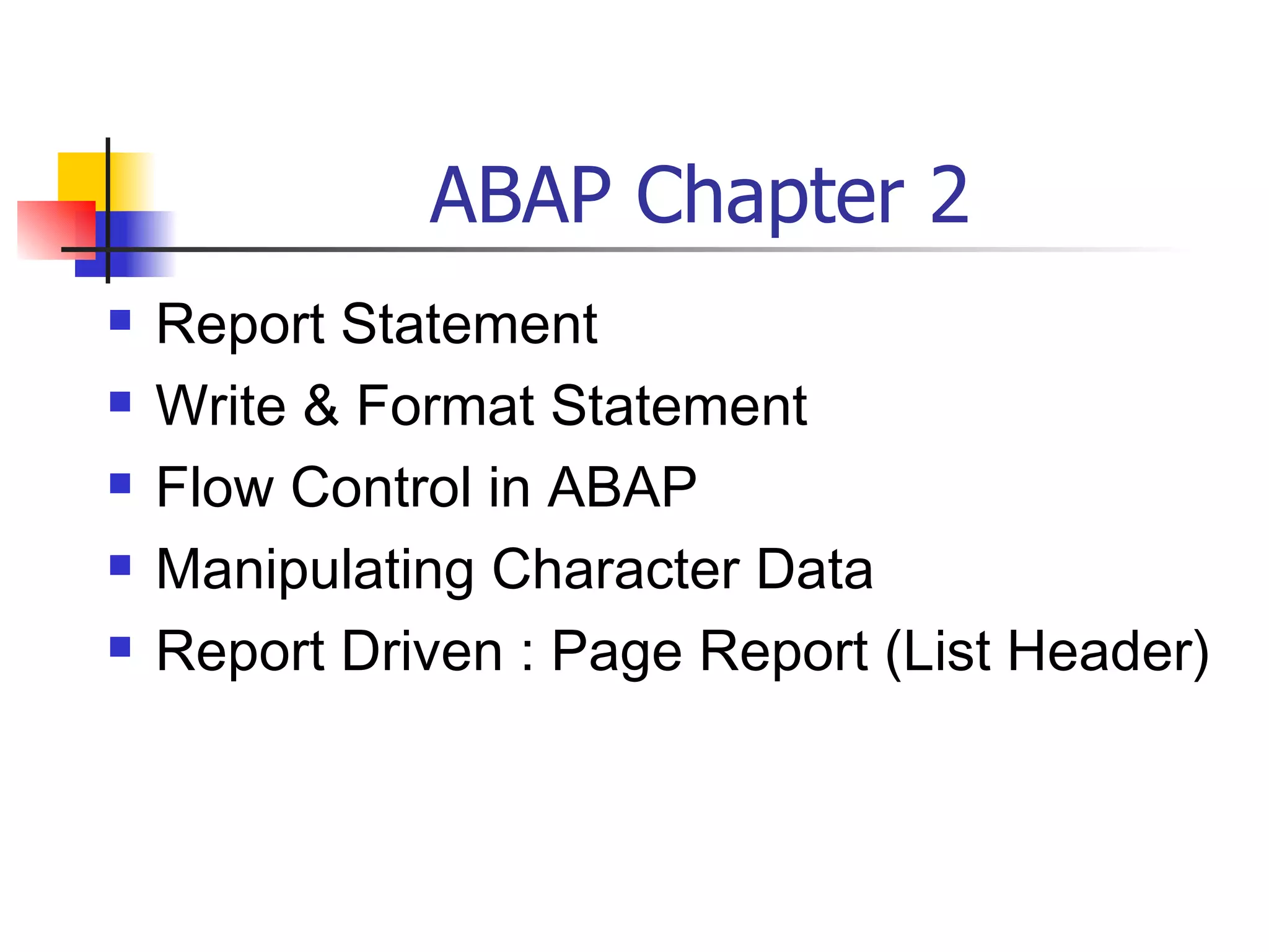 - Event-driven programming using TOP-OF-PAGE, START-OF-SELECTION, and END-OF-PAGE