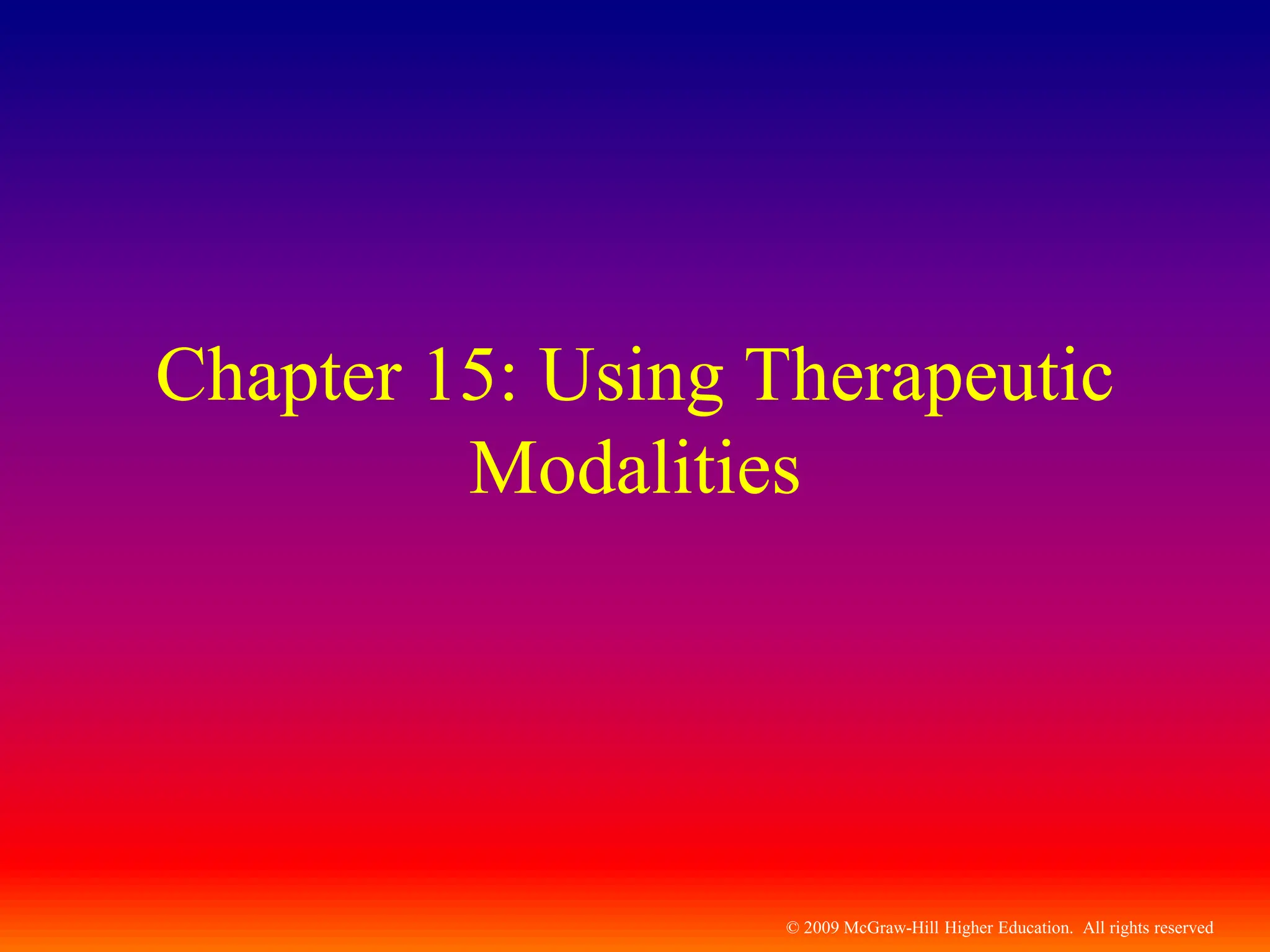 This document discusses therapeutic modalities used in athletic training including cryotherapy, thermotherapy, ultrasound, and mechanical modalities. It provides details on the physiological effects and applications of different modalities, focusing on electromagnetic modalities like various heating and cooling treatments. Cryotherapy and thermotherapy are electromagnetic modalities that rely on cooling or heating tissue through conduction, convection, or radiation to impact the healing process by altering blood flow, reducing inflammation and pain, and affecting muscle spasms.