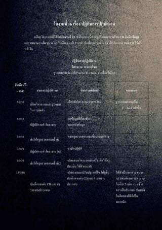ใบงานที่ 16 เรื่อง ปฏิทินการปฏิบัติงาน