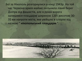 Бої за Нікопольрозгорнулися в кінці 1943р. На той