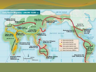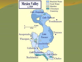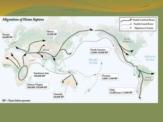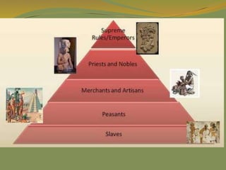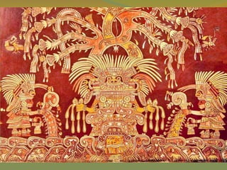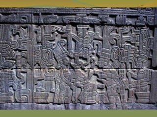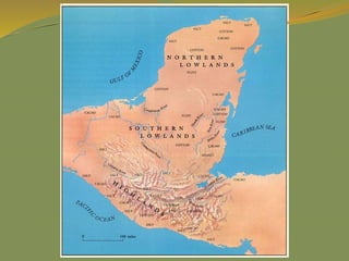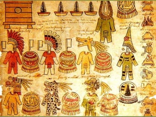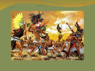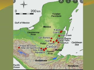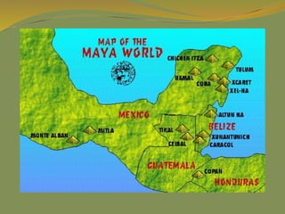 The document provides a detailed overview of the history and civilizations of ancient Mexico, beginning with the first humans who migrated from Asia around 40,000 years ago. It discusses the major pre-Columbian civilizations that arose including the Olmec, Teotihuacan, Maya, Toltec, and Aztec empires. The Maya are described in particular depth, highlighting their advanced mathematics, calendars, and city-states, before environmental challenges including deforestation led to the decline and abandonment of the classic Maya cities between 800-950 AD. The document also outlines the rise and fall of the powerful Aztec empire that dominated central Mexico prior to the Spanish conquest in the early 16th century.