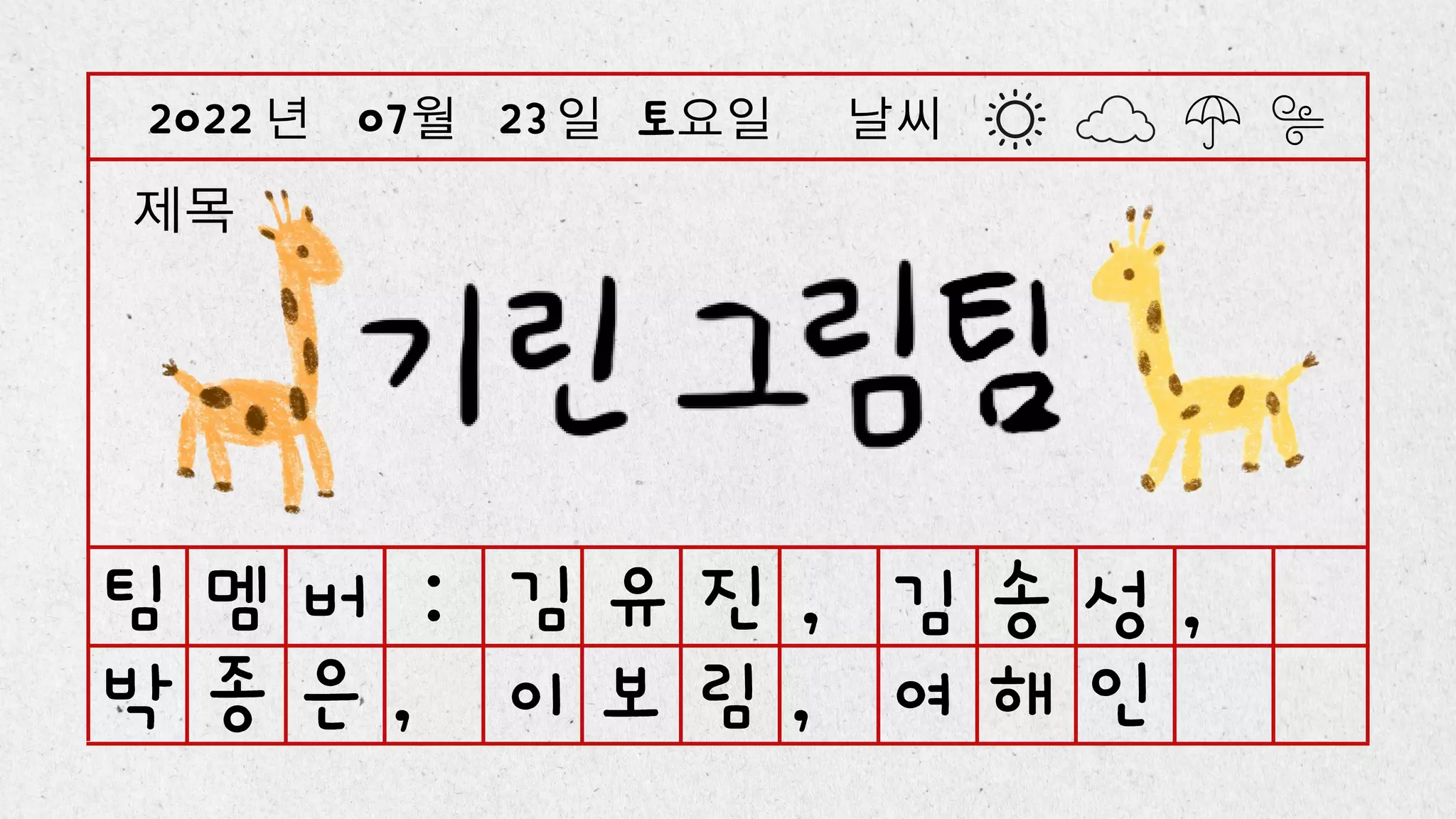 기린그림 팀은 사용자의 글씨체를 학습하여 나만의 폰트로 일기를 쓰고, 사진을 업로드 하면 직접 그림을 그린 것처럼 변환하여 그림일기를 쓸 수 있도록 하는 프로젝트를 진행 했습니다.