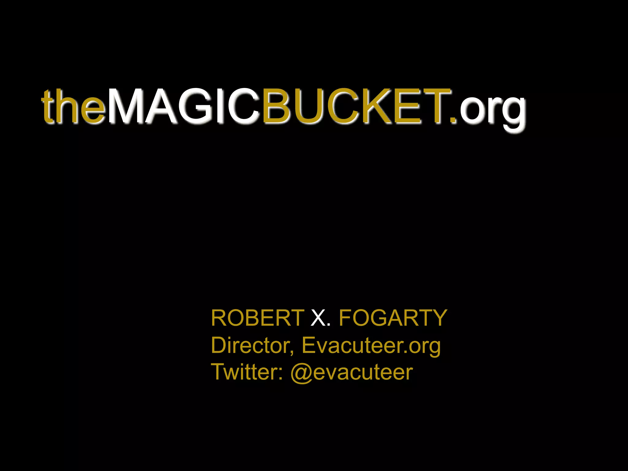Robert Fogarty is the director of Evacuteer.org, an organization that works to ensure 30,000 New Orleans residents without transportation have evacuation options during storms. Through a street performance experiment called the Real Bucket Challenge, Fogarty and volunteers raised $173.28 which they aim to turn into $30,000 online to fund public art that serves as neighborhood evacuation meeting points. The performance involved body painting, panhandling, and attracted 130 donors, highlighting the lack of evacuation access for over a third of New Orleans residents after Hurricane Katrina.