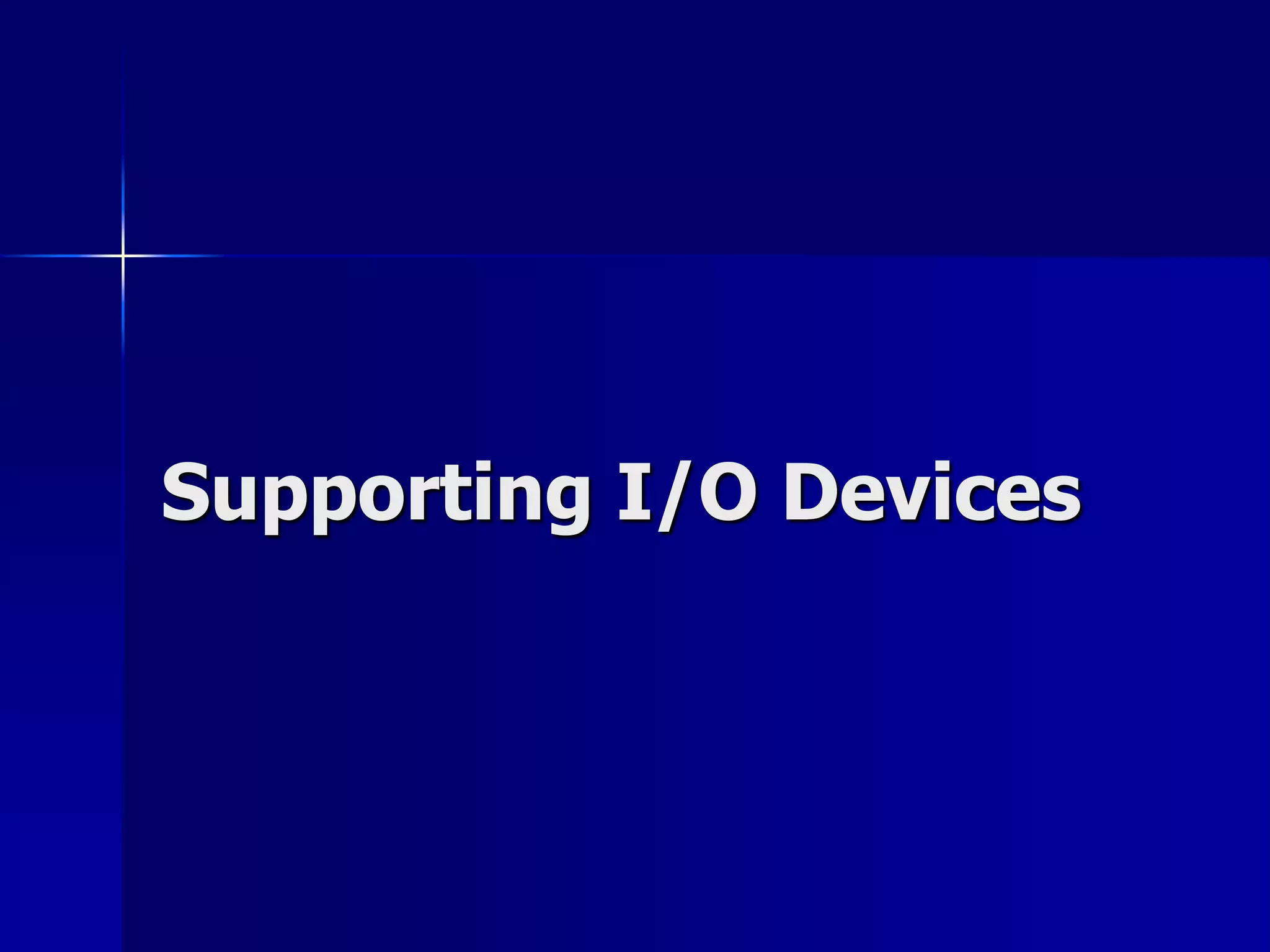 This document discusses supporting input/output devices. It covers installing both hardware and software, including device drivers. It describes various port types like serial, parallel, USB, IEEE 1394, and expansion slots. It provides details on using and troubleshooting keyboards, mice, and other common peripheral devices.