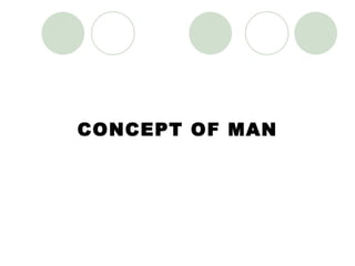 1) Different views of the concept of man and his attributes and needs from nursing theorists like Henderson, Rogers, Nightingale, and Maslow.