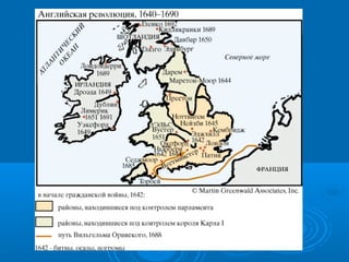 Документ представляет собой план-конспект урока по истории для 10 класса, посвящённый английской буржуазной революции 1640-1660 годов. Основными целями урока являются изучение причин, хода и результатов революции, а также воспитание уважения к социальным справедливостям и демократии. Урок включает разнообразные виды деятельности, такие как обсуждение, работа с текстом и картой, и заканчивается подведением итогов и заданием на дом.