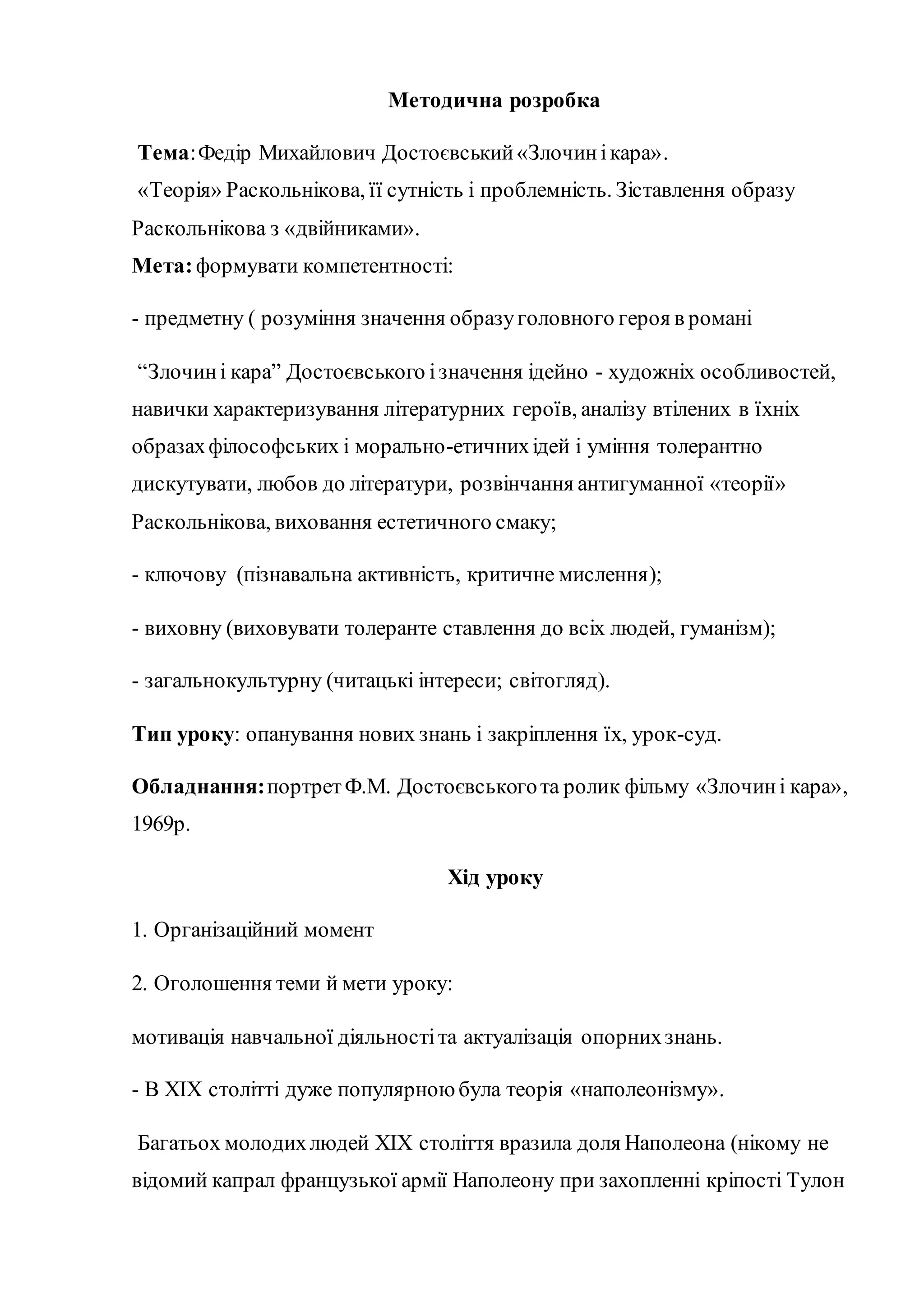 “Злочині кара” Достоєвського ізначення ідейно - художніх особливостей,