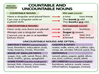 The document provides a comprehensive overview of nouns, detailing their definitions, types, and classifications such as common, proper, countable, uncountable, concrete, and abstract nouns. It includes examples and explanations for each noun type, as well as exercises to reinforce understanding. Additionally, it covers related concepts like collective nouns, gerunds, and compound nouns.