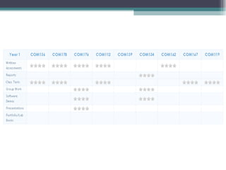 This document summarizes several projects aimed at improving student retention and academic performance at the university. It discusses the IN-TUNE and STIR projects from 2009-2011 that investigated factors affecting first-year student performance and implemented social activities. It also describes a 2012 teaching program on assessment and feedback and the development of a framework to provide exemplars and feedback to first-year students across various degree programs. An audit of first-year assessments was conducted and student focus groups provided positive initial feedback on the exemplars with some suggestions for improvements to promote broader use.