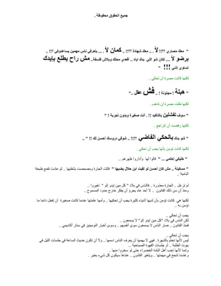 ‫ﻣﺤﻔﻮﻇ‬ ‫اﻟﺤﻘﻮق‬ ‫ﺟﻤﯿﻊ‬‫ﺔ‬. "‫؟؟‬‫ﻣﺼﺎري‬ ‫ﻣﻌﻚ‬!!‫ﻷ‬...‫؟؟‬ ‫ﺷﮭﺎدة‬ ‫ﻣﻌﻚ‬.. !!‫ﻷ‬ ‫ﻛﻤﺎن‬... .‫؟‬ ‫ﯾﺴﺎﻋﺪوﻛﻲ‬ ‫ﻣﮭﻤﯿﻦ‬ ‫ﻧﺎس‬ ‫ﺑﺘﻌﺮﻓﻲ‬.. !! ‫ﻷ‬ ‫ﺑﺮﺿﻮ‬....‫اﯾﺎه‬ ‫ﺑﺪك‬ ‫اﻟﻠﻲ‬ ‫ﺷﻮ‬ ‫ﻟﻜﺎن‬..‫ﻓﻠﺴﻔﺔ‬ ‫وﺑﻼش‬ ‫ﻣﺤﻠﻚ‬ ‫أﻗﻌﺪي‬..‫ﺑﺈﯾﺪك‬ ‫ﯾﻄﻠﻊ‬ ‫راح‬ ‫ﻣﺶ‬ ‫إﺷﻲ‬ ‫ﺗﺴﺎوي‬!!!" ‫ﻟﻜﻨ‬‫ﮭﺎ‬‫ﺗﺤﻜﻲ‬ ‫أن‬ ‫ﻣﺼﺮة‬ ‫ﻛﺎﻧﺖ‬.. "‫ھﺒﻠﺔ‬!‫ﻣﺠﻨﻮﻧﺔ‬.. !‫ﻓﺶ‬‫ﻋﻘﻞ‬".. ‫ﻟﻜﻨ‬‫ﮭﺎ‬‫ﺗﺬھﺐ‬ ‫أن‬ ‫ﻣﺼﺮة‬ ‫ﻇﻠﺖ‬. "‫ﺳﻮف‬‫ﺗﻔﺸﻠﯿﻦ‬‫ﺑﺎﻟﺘﺄﻛﯿﺪ‬. !!‫ﺗﺠﺮﺑﺔ‬ ‫وﺑﺪون‬ ‫ﺻﻐﯿﺮة‬ ‫أﻧﺖ‬" ! ‫ﻟﻜﻨ‬‫ﮭﺎ‬‫ﺗﺘﺮاﺟﻊ‬ ‫أن‬ ‫رﻓﻀﺖ‬.. "‫ﺑﺪك‬ ‫ﺷﻮ‬‫اﻟﻔﺎﺿﻲ‬ ‫ﺑﺎﻟﺤﻜﻲ‬‫؟‬.. !!!‫ﻟﻚ‬ ‫أﺣﺴﻦ‬ ‫دروﺳﻚ‬ ‫ﺷﻮﻓﻲ‬.. " !! ‫ﻟﻜﻨ‬‫ﮭﺎ‬‫ﺗﺤﻜﻲ‬ ‫أن‬ ‫ﯾﺠﺐ‬ ‫ﺑﺄﻧﮭﺎ‬ ‫ﺗﺆﻣﻦ‬ ‫ﻛﺎﻧﺖ‬. "‫إﺣﻠﻤﻲ‬ ‫ﺧﻠﯿﻜﻲ‬" ...‫ﻇﮭﺮھﻢ‬ ‫وأداروا‬ ‫ﻟﮭﺎ‬ ‫ﻗﺎﻟﻮا‬... "‫ﻣﺴﻜﯿﻨﺔ‬..‫أ‬ ‫ﻛﺎن‬ ‫ﻣﺶ‬‫ﯾﻀﺒﮭﺎ‬ ‫ﺣﻼل‬ ‫اﺑﻦ‬ ‫ﻟﻘﯿﺖ‬ ‫ﻟﻮ‬ ‫ﺣﺴﻦ‬"‫ﺑﺸﻔﺘﯿﮭﺎ‬ ‫وﻣﺼﻤﺼﺖ‬ ‫اﻟﺠﺎرة‬ ‫ﻗﺎﻟﺖ‬..‫ﻃﺒﺨﺔ‬ ‫ﺗﻘﻤﻊ‬ ‫ﻋﺎدت‬ ‫ﺛﻢ‬ ‫اﻟﺒﺎﻣﯿﺔ‬.. ‫ﺗﺰﻋﻞ‬ ‫ﻟﻢ‬..‫ﻣﻌﺬورة‬ ‫اﻟﺠﺎرة‬..‫ﺑﻼد‬ ‫ﻓﻲ‬ ‫ﻓﺎﻟﻨﺎس‬"‫إﻟﻮ‬ ‫إﯾﺪو‬ ‫ﻣﯿﻦ‬ ‫ﻛﻞ‬"‫ﺗﻐﯿﺮوا‬.. ‫اﻟﻘﺎﻧﻮن‬ ‫ذﻟﻚ‬ ‫ﺳﻦ‬ ‫أن‬ ‫وﻣﻨﺬ‬..‫اﻟﻤﺴﻤﻮح‬ ‫ﺣﺪود‬ ‫ﺧﺎرج‬ ‫ﯾﻔﻜﺮ‬ ‫أن‬ ‫ﯾﺠﺮؤ‬ ‫ﻋﺎد‬ ‫أﺣﺪ‬ ‫ﻻ‬.. ‫ﻟﻜﻨﮭﺎ‬‫ھﻲ‬‫ﻛﺎﻧﺖ‬‫ﺗﺤﻜﯿﮭﺎ‬ ‫أن‬ ‫ﯾﺠﺐ‬ ‫ﻛﺜﯿﺮة‬ ‫أﺷﯿﺎء‬ ‫ﻟﺪﯾﮭﺎ‬ ‫ﺑﺄن‬ ‫ﺗﺆﻣﻦ‬..‫ﻣﺎ‬ ‫داﺋﻤﺎ‬ ‫ﺗﻔﻌﻞ‬ ‫أن‬ ‫ﺻﻐﯿﺮة‬ ‫ﻛﺎﻧﺖ‬ ‫ﻋﻨﺪﻣﺎ‬ ‫ﻋﻠﻤﺘﮭﺎ‬ ‫وأﻣﮭﺎ‬ ‫ﺑﮫ‬ ‫ﺗﺆﻣﻦ‬.. ‫ﺗﺤﻜﻲ‬ ‫أن‬ ‫ﯾﺠﺐ‬.. ‫ﺑﻼد‬ ‫ﻓﻲ‬ ‫اﻟﻨﺎس‬ ‫ﻟﻜﻦ‬"‫إﻟﻮ‬ ‫إﯾﺪو‬ ‫ﻣﯿﻦ‬ ‫ﻛﻞ‬"‫ﯾﺴﻤﻌﻮن‬ ‫ﻻ‬.. ‫اﻟﻘﺎﻧﻮن‬ ‫ﻓﻤﻨﺬ‬..‫أﻧﻔﺴﮭﻢ‬ ‫ﺳﻮى‬ ‫ﯾﺴﻤﻌﻮن‬ ‫ﻻ‬ ‫اﻟﻨﺎس‬ ‫ﺻﺎر‬..‫أﻛﺎد‬ ‫ﺳﺘﺎر‬ ‫ﻓﻲ‬ ‫اﻟﻨﻮﻣﯿﻨﯿﺰ‬ ‫أﺧﺒﺎر‬ ‫وﺳﻮى‬‫ﯾﻤﻲ‬.. ‫ﺗﺤﻜﻲ‬ ‫أن‬ ‫ﯾﺠﺐ‬.. ‫ﺑﺎﻟﺸﮭﺮة‬ ‫ﺗﺤﻠﻢ‬ ‫ﻷﻧﮭﺎ‬ ‫ﻟﯿﺲ‬.‫اﺳﻤﮭﺎ‬ ‫اﻟﻨﺎس‬ ‫ﯾﻌﺮف‬ ‫أن‬ ‫ﯾﮭﻤﮭﺎ‬ ‫ﻻ‬ ‫ﻓﮭﻲ‬..‫ﻓﻲ‬ ‫اﻟﻠﯿﻞ‬ ‫ﺟﻠﺴﺎت‬ ‫ﻓﻲ‬ ‫اﻟﺴﺎﻋﺔ‬ ‫ﺣﺪﯾﺚ‬ ‫ﺗﻜﻮن‬ ‫أن‬ ‫وﻻ‬ ‫اﻟﻄﻠﺒﺔ‬ ‫ﺑﯿﻮت‬..‫اﻟﺼﺒﺎﺣﯿﺔ‬ ‫اﻟﻘﮭﻮة‬ ‫ﺟﻠﺴﺎت‬ ‫أو‬... ‫ﻣﻨﮭﺎ‬ ‫ﺳﺨﺮوا‬ ‫ﻟﻮ‬ ‫ﺣﺘﻰ‬ ‫اﻟﺨﻀﺮاء‬ ‫اﻟﺒﻠﺪة‬ ‫أھﻞ‬ ‫ﺗﺤﺐ‬ ‫ﻷﻧﮭﺎ‬ ‫وإﻧﻤﺎ‬.. ‫ﻣﮭﻤﺘﮭﺎ‬ ‫ﻓﻲ‬ ‫ﺗﻨﺠﺢ‬ ‫وﻋﻨﺪﻣﺎ‬..‫و‬‫اﻟﻘﺎﻧﻮن‬ ‫ﯾﺘﻐﯿﺮ‬..‫ﺑﺨﯿﺮ‬ ‫ﺷﻲء‬ ‫ﻛﻞ‬ ‫ﺳﯿﻜﻮن‬ ‫ﻋﻨﺪھﺎ‬.