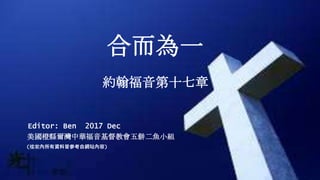 本文探讨了约翰福音第十七章中耶稣的最后祷告,强调了他为自己、门徒和信徒祈求的内容,包括请求父神保守他们和使他们合而为一。耶稣提出了关于荣耀的重要性,并阐述了神的荣耀与世间荣耀的区别。最终,合一被视为追求成圣和彰显基督荣耀的重要条件。