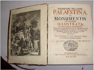 ניתן למצוא כמהספרים מקוריים כאלה במספר מקומות בעולם ואף באוניברסיטת חיפה . אפשר לראות כאן את המקומות בהם הספר נמצא וגם אפשר למצוא פרטים על המחבר ועוד . המחבר רילאנדי , איש אשכולות של ממש , גיאוגרף , קרטוגרף ופילולוג ידע על בוריין עברית , ערבית ויוונית עתיקה , בנוסף לשפות האירופאיות . שפת הספר היא לטינית . בשנת 1695 הוא נשלח לסיור בארץ ישראל או בשמה דאז פלסטינה . במסעו הוא סקר כ -2500 מקומות יישוב המוזכרים בתנ '' ך או במשנה . שיטת המחקר שלו היתה מעניינת . ראשית , מיפה את ארץ ישראל . שנית , רילאנדי זיהה את כל אחד מהמקומות המוזכרים במשנה או בתלמוד עם מקור שמו . אם מקור השם יהודי , הביא את הפסוק המתאים בכתבי הקודש . אם מקור השם רומי או יווני הביא ביוונית או בלטינית את ההקשר . שלישית הוא אף ערך סקר ומפקד אוכלוסין לכל מקום יישוב . המסקנות הבולטות הן :
