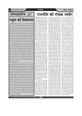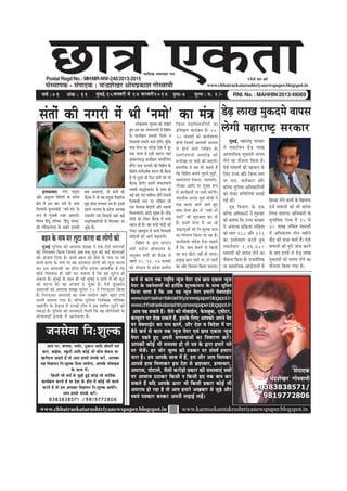 SkeâleeÌãÓãà :01 ‚ãâ‡ãŠ : 11 ½ãìâºãƒÃ,15peveJejer mes 14 HeâjJejer2014 ¹ãðÓŸ-4 ½ãîʾã : Á. 2 /- ÔãâÔ©ãã¹ã‡ãŠ - Ôãâ¹ã㪇㊠: Þã¶³ÍãñŒãÀ ‚ããñ½ã¹ãƇãŠãÍã ØããñÔÌãã½ããè RNI. No. : MAHHIN/2013/49069 vist us at www.chhatraekatarashtriyanewspaper.blogspot.in ½ãããäÔã‡ãŠ Ôã½ããÞããÀ ¹ã¨ã www.chhatraekatarashtriyanewspaper.blogspot.in PostalRegdNo.:MH/MR-NW-248/2013-2015 www.karmsekamtakrashtriyanewspaper.blogspot.inwww.chhatraekatarashtriyanewspaper.blogspot.in keâce& mes keâece lekeâ je°^erÙe vÙetpe heshej SJeb Úe$e Skeâlee vÙetpe heshej kesâ he{vesJeeueeW keâes neefo&keâ MegYekeâecevee kesâ meeLe metefÛele efkeâÙee peelee nw efkeâ Deye Ùen vÙetpe heshej nceejer JesyemeeF&š www.karmsekamtakrashtriyanewspaper.blogspot.in www.chhatraekatarashtriyanewspaper.blogspot.in Deehe he{ mekeâles nQ~ pewmes keâer ceesyeeF&ue, Hesâmeyegkeâ, šdJeeršj, kebâhÙetšj hej osKe mekeâles nQw, Fmekesâ efueS Deehekeâes Deheves vesš hej JesyemeeF&š keâe veece [eueW, Deewj osMe Je efJeosMe ceW Iej yew"s keâce& mes keâece lekeâ vÙetpe heshej SJeb Úe$e Skeâlee vÙetpe heshej he{les ngS Deheveer mecemÙeeDeeW keâe efveJeejCe keâjW~ Deehekeâer keâesF& Yeer mecemÙee nes lees he$e kesâ Éeje nceejs heles hej YespeW~ nj peesj peguce keâer škeäkeâj hej mebIe<e& nceeje veeje nw~ nce Deehekesâ meeLe ceW nQ, nce Deewj Deehe efceuekeâj Deehemes neLe efceueekeâj Fme osMe mes Yeü°eÛeej, nlÙeeÛeej, DehejeOe, Ieesšeues, pewmeer keâjesÌ[es Øekeâej keâer mecemÙeeSb meyeeW hej DeeJeepe G"ekeâj efkeâmeer ve efkeâmeer no lekeâ keâce keâj mekeâles nQ Ùeefo Deehekesâ Thej Yeer efkeâmeer Øekeâej keâesF& Yeer DehejeOe nes jne nw lees Deehe nceejs DeKeyeej mes pegÌ[s Deewj mJeÙeb he$ekeâej yevekeâj Deheveer ueÌ[eF& ueÌ[W~ pevemesJee efve:Megukeâ Deehe Iej, yebieuee, huee@š, ogkeâeve Deeefo Øee@hešea SJeb keâej, yeeF&keâ, mketâšer Deeefo keâesF& Yeer Ûeerpe yesÛevee Ùee Kejerovee Ûeenles nQ lees Deehe ncemes mebheke&â keâjW, Deehekeâe Ùen efJe%eeheve efve:Megukeâ efoÙee peeÙesiee, Deehekesâ ceesyeeFU kesâ meeLe ceW~ efkeâmeer Yeer Oece& mes pegÌ[er ngF& keâesF& Yeer Oeeefce&keâ keâeÙe&›eâce keâjles nQ Ùee osMe kesâ nerle ceW keâesF& Yeer keâeÙe& keâjles nQ lees nce Deehekeâe efJe%eeheve efve:Megukeâ ÚeheWies~ Deehe ncemes mebheke&â keâjW~ 8383838571 /98197728068383838571 /98197728068383838571 /98197728068383838571 /98197728068383838571 /9819772806 [sÌ{ }eKe cegkeâoces keeheme }sieer ceneje<š^ mejkeâej F}eneyeeo iebiee, Ùecegvee Deewj DeÂMÙe ef$ekesCeer kesâ mebiece #es$e cesb Fme yeej Oece& kesâ meeLe efmeÙeemeer pegie}yeboer 'vecees ceb$e' kesâ ™he cesb ietbpeleer vepej DeeSieer~ efkeMke efnbot heefj<eo 'efnbot mebmeo' keâer heefjkeâuhevee kesâ menejs Fmekeâer cegbyeF&, ceneje<š^ mejkeâej ves lekeâjeryeve [sÌ{ }eKe DeehejeefOekeâ cegkeâoces keeheme }sves keâe Heâwme}e efkeâÙee nw~ Ssmes ceece}esb keâer henÛeeve kesâ ef}S jepÙe Deewj efpe}e mlej hej pepe, keâ}skeäšj Deewj keefj… hegef}me DeefOekeâeefjÙeesb keâes }skeâj meefceefleÙeeb yeveeF& ieF& Leerb~ ie=n efkeYeeie kesâ Skeâ keefj… DeefOekeâejer ves ieg®keej keâes yeleeÙee efkeâ jepÙe mejkeâej ves DehejeOe heÇef›eâÙee mebefnlee keâer Oeeje 288 Deewj 321 keâe Fmlescee} keâjles ngS lekeâjeryeve 1,46,680 ceece}esb keâes keeheme }sves keâe Heâwme}e efkeâÙee nw~ jepeveereflekeâ Ùee meeceeefpekeâ Deeboes}veesb cesb efnmmee }sves kee}esb kesâ efKe}eHeâ ope& ceece}esb keâes Yeer keeheme ef}Ùee peeSiee~ DeefOekeâejer kesâ cegleeefyekeâ jepÙe cesb 35 mes 40 }eKe }befyele ceece}esb cesb DeefOekeâlece leerve cenerves keâwo keâer mepee kee}s nwb~ Ssmes ceece}esb keâer hetjer peebÛe keâjves kesâ yeeo Fvecesb mes [sÌ{ }eKe cegkeâoceesb keâes keeheme }sves keâe Heâwme}e efkeâÙee ieÙee nw~ mebleesb keâer veiejer cesb Yeer ‘vecees' keâe ceb$e}eskeâmeYee Ûegveeke keâes osKeles ngS Fme yeej mebieceveiejer cesb efkeefnhe kesâ keâeÙe&›eâce Fmekeâer efoMee ke efmeÙeemeer ceeÙeves kee}s nesbies~ Ûetbefkeâ ceeIe ces}e keâe mebosMe osMe cesb otj lekeâ peelee nw Fmeer keâejCe Ùeneb ße=bKe}eyeæ keâeÙe&›eâce DeeÙeesefpele nesbies~ Skeâ Heâjkejer keâes efkeefnhe kesâ kesâbõerÙe ceeie&oMe&keâ ceb[} keâer yew"keâ nw lees otmejs ner efove mebleesb keâer Yeer yew"keâ nesieer~ Fmecesb MebkeâjeÛeeÙe& mkeeceer keemegoskeevebo kesâ meeLe ner keâF& yeÌ[s meble Meeefce} nesbies efpemecesb efmeÙeemeer mlej hej meef›eâÙe jns jece efke}eme kesboebleer Deewj mkeeceer efÛevceÙeevebo Deeefo cegKÙe nwb~ vejsbõ ceesoer keâes }skeâj yew"keâ cesb ÛeÛe&e menpe ner nw~ Ùen ÛeÛe&e ceesoer keâes }skeâj cenekegâbYe cesb Ûe}er efmeÙeemeer keâefÌ[Ùeesb keâes Deeies yeÌ{eSieer~ efkeefnhe kesâ heÇeble mebie"ve ceb$eer ceveespe ßeerkeemleke kesâ Devegmeej mebleesb keâer yew"keâ mes hen}s 25, 26, 27 pevekejer keâes mebie"ve kesâ heÇosMe mlejerÙe nkee yeveeSieer, lees mebleesb keâer yew"keâ cesb Yeer Ùen heÇcegKe kewÛeeefjkeâ cegöe nesvee }ieYeie leÙe nw~ Fmemes hen}s Yeepehee kesâ heÇosMe DeOÙe#e jceeheefle jece ef$ehee"er Ùeneb keâF& heoeefOekeâeefjÙeesb mes efce}keâj pee Ûegkesâ nwb~ efpe}e heoeefOekeâeefjÙeesb keâe heÇefMe#eCe keâeÙe&›eâce nw~ 27- 28 pevekejer keâes keâeÙe&Mee}e nesieer efpemecesb Deeieeceer Deiemle cesb nesves kee}s efkeefnhe kesâ mkeCe&peÙebleer meceejesn keâer ™hejsKee hej ÛeÛe&e keâer peeSieer~ ne}ebefkeâ kes Ùen Yeer keânles nwb efkeâ efkeefnhe Deheves hegjeves cegöesb, OecejblejCe jeskeâvee, hejekele&ve, ieesj#ee Deeefo hej cegKÙe ™he mes keâeÙe&›eâceesb hej ÛeÛe&e keâjsieer~ YeejleerÙe pevelee Ùegkee ceesÛe&e ves Skeâ keâoce Deeies jnles ngS ceeIe ces}e #es$e cesb 'vecees šer heešer&' keâer Meg®Deele keâj oer nw~ Fmecesb ces}e cesb Dee jns ßeæe}gDeesb ke