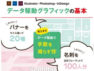【株式会社 帆風】第170回バンフーセミナー Illustrator・Photoshop・InDesignデータ駆動グラフィックの基本 http://www.vanfu.co.jp/seminar/170th.html http://www.dtp-transit.jp/seminar/vanfu/post_2118.html