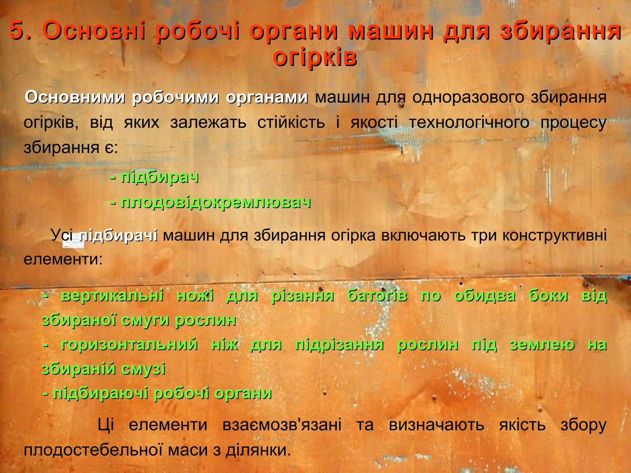 5. Основні робочіоргани машин для збирання5. Основні робочі органи машин для збирання