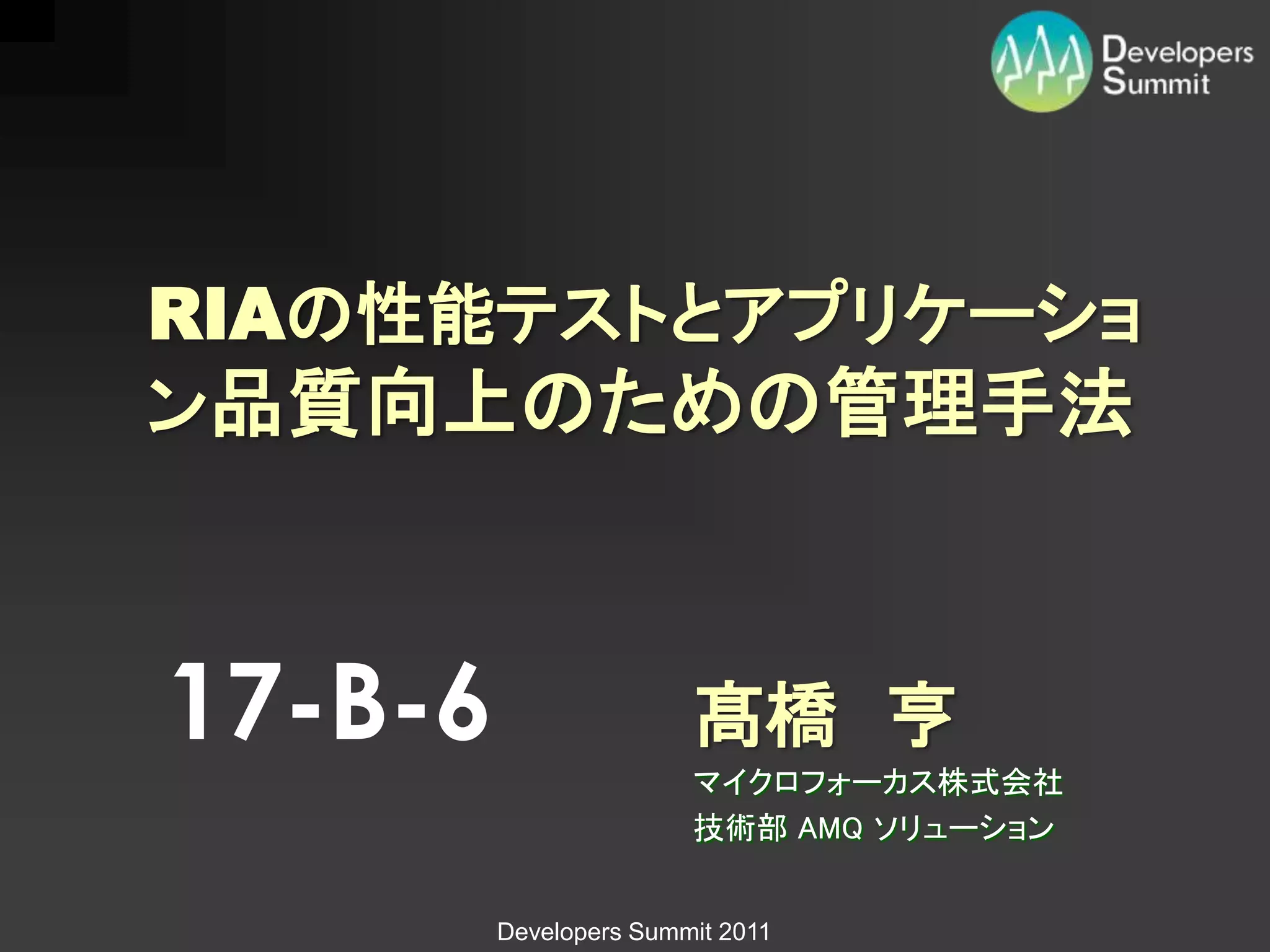 【17-B-6】RIAの性能テストとアプリケーション品質向上のための管理手法