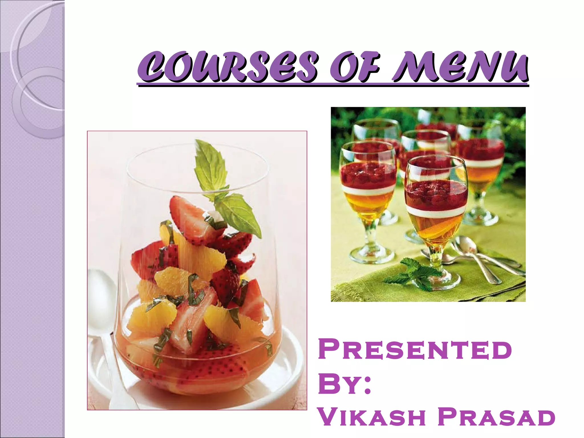 The document presents the courses and menu items for a meal, including starters like caviar and canapes, soups, eggs, pasta and rice, fish, small entrees, sorbet, roasted and grilled meats, vegetables, salads, a cold buffet, cheeses, sweets like cheesecakes and cakes, savory items like brouchees and quiche, fresh and dried fruits, and beverages like tea, coffee, and Irish coffee.