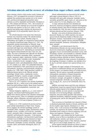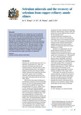 Since its discovery in 1817, selenium has received considerable interest from scientists. Native selenium and several selenium minerals were discovered in the following decades. Research into selenium minerals increased, with many selenium deposits being reported worldwide, though few independent selenium deposits. Selenium is mainly obtained as a byproduct of other metal mining, and is primarily produced from copper refinery anode slimes. This paper provides an overview of selenium minerals, including their discovery and occurrence. It also summarizes methods of recovering selenium from copper anode slimes. The focus is on the distribution of selenium resources in minerals and deposits.