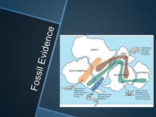 The document summarizes Alfred Wegener's theory of continental drift from 1912. It proposed that the continents were once joined together in a supercontinent called Pangea, which later broke apart and drifted to their current positions. Wegener noted evidence supporting this, like matching fossil and rock formations across oceans, but did not know the mechanisms that caused the drift. Later studies discovered plate tectonics, including sea floor spreading at mid-ocean ridges, which provided the explanation for how and why the continents moved over time.