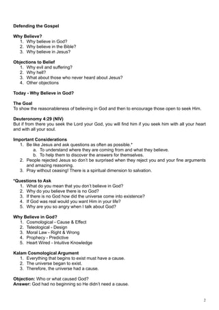 The document discusses reasons for believing in God, including: