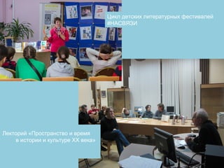 Документ описывает проекты библиотеки № 180 в Москве за 2014-2015 годы, включая лекции, фестивали литературы для детей и подростков, а также различные мероприятия для привлечения новых посетителей. Проект, поддержанный грантом от департамента культуры, акцентирует внимание на важности литературы и культурных связей, а также на взаимодействии с издательствами и авторами. Основной целью мероприятий было предоставить детям и родителям возможность получать новые знания и впечатления в дружелюбной и доступной атмосфере библиотеки.