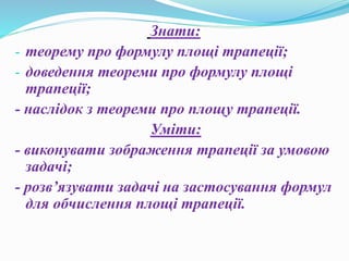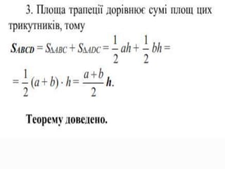 - теорему проформулу площі трапеції;