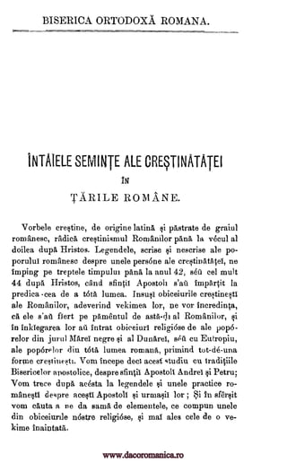Documentul analizează tradițiile creștinismului în țările române, cu accent pe activitatea apostolilor Andrei și Petru. Se discută despre influențele străine asupra obiceiurilor religioase românești și corelarea acestora cu învățăturile creștine. Studiul oferă o relatare a misiunilor apostolice și a legendei populare din jurul acestei perioade.